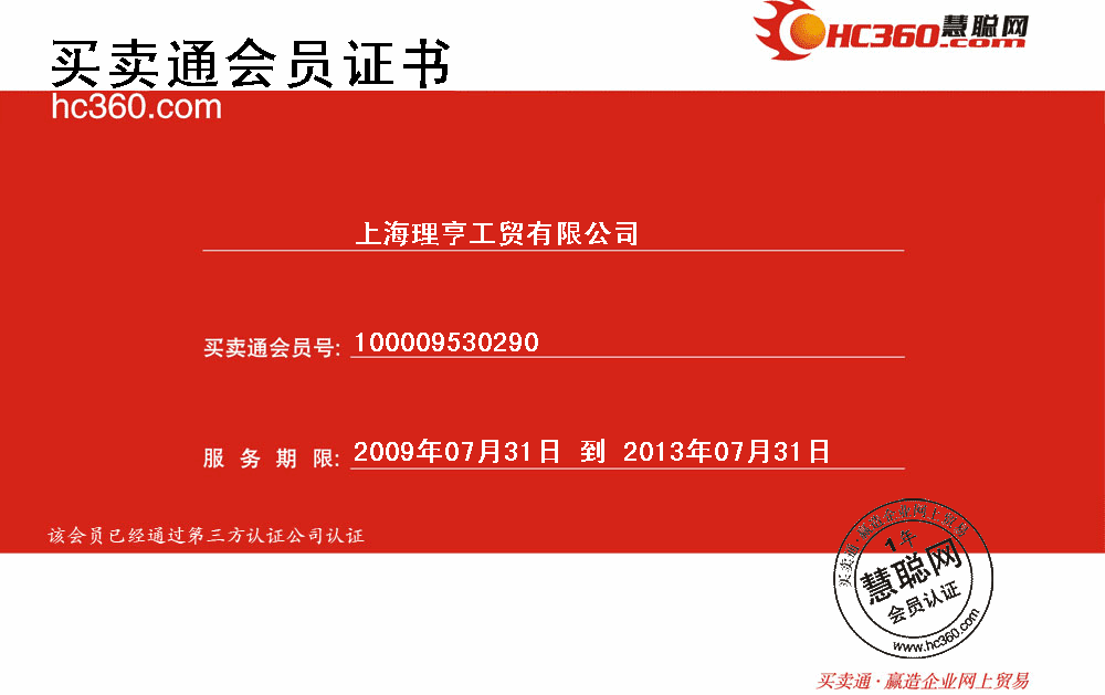 上海理亨誠信通會員證